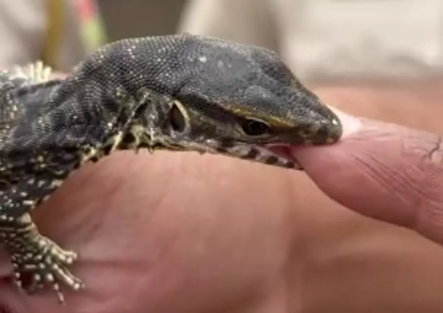 रेंजर ने खुदको लिजर्ड से कटवाया,दिखाया- ये जहरीला नहीं: 1 क्विंटल वजन खींच लेता है गोयरा