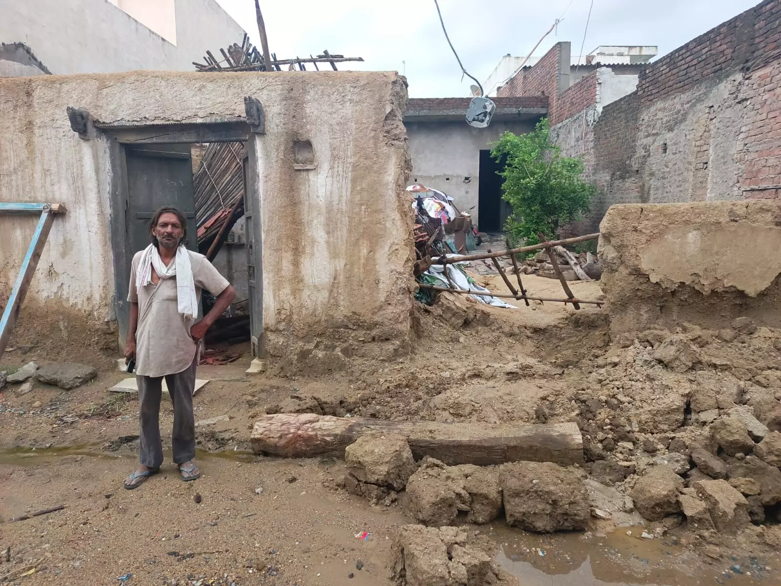 बारिश से गिरी कच्ची केलु पॉश पोल