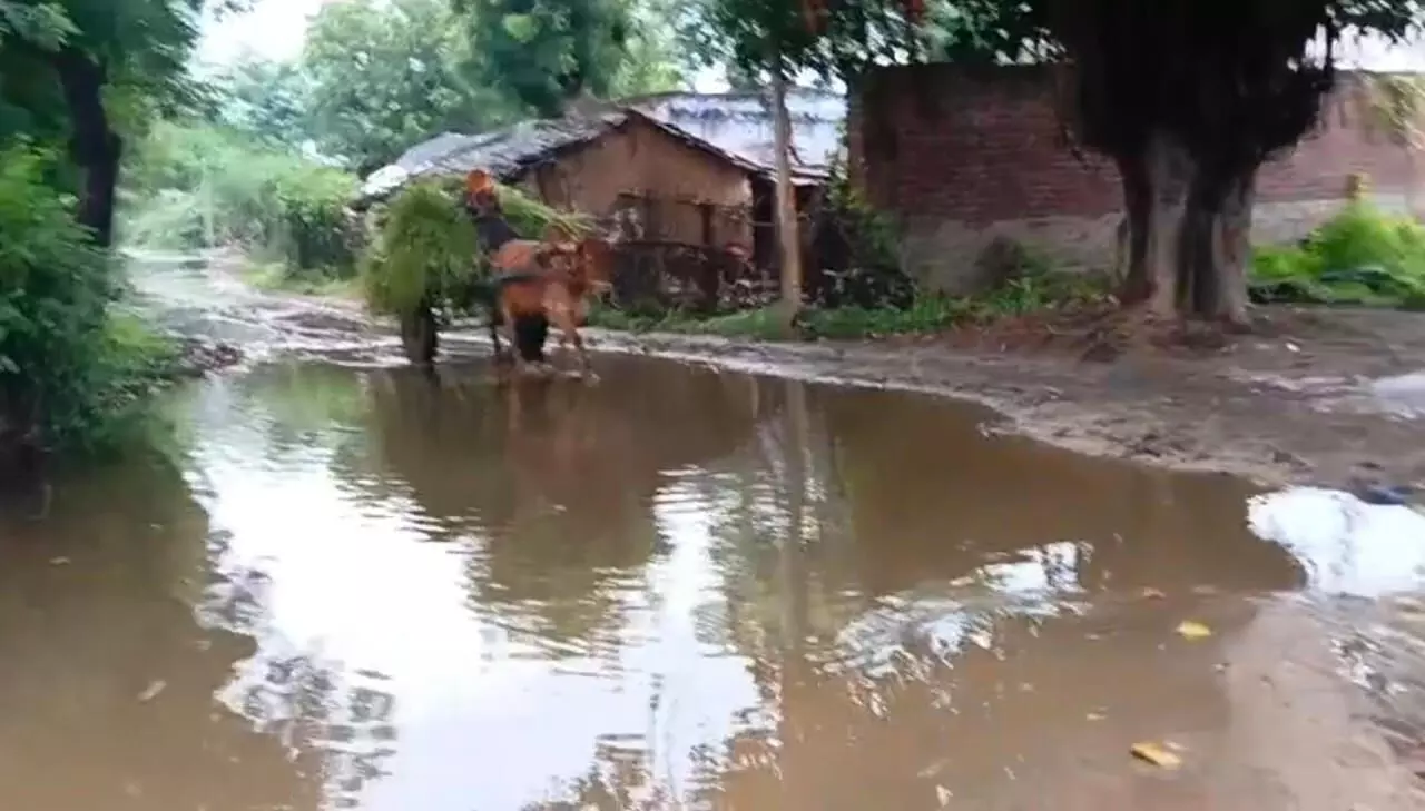 होलिरड़ा में पानी निकासी नहीं होने से सड़क पर भर पानी, ग्रामीण परेशान