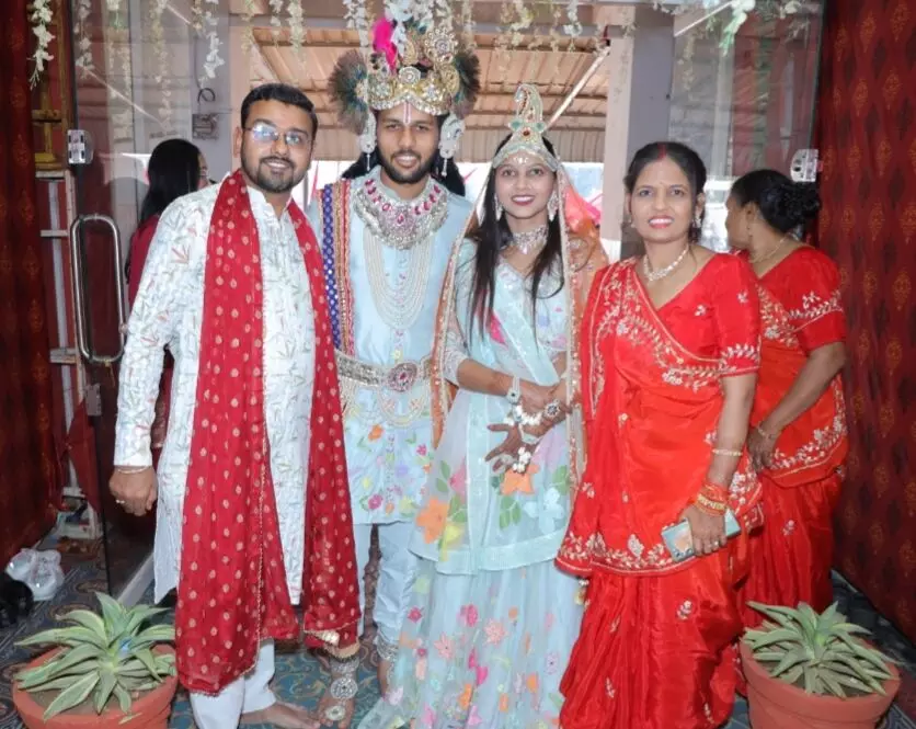 भीलवाड़ा, । शादी का मंच सजा हुआ था और बाराती कोई साधारण नहीं बल्कि देवी-देवता थे। बारात किसी ओर की नहीं स्वयं द्वारिकाधीश भगवान श्रीकृष्ण की थी। बारात में आज मेरे श्याम की शादी है, आज मेरे भगवान की शादी है जैसे गीत गूंज रहे थे और बाराती जमकर नाच-गान कर रहे थे। ये नजारा शुक्रवार दोपहर शहर के रोडवेज बस स्टेण्ड के पास अग्रवाल उत्सव भवन में शुक्रवार को पोरवाल परिवार की ओर से सात दिवसीय श्रीमद् भागवत कथा महोत्सव के चौथे दिन सोजत रामद्वारा के रामस्नेही संत मुमुक्षु राम महाराज के सानिध्य में राम चरित्र एवं कृष्णजन्म नंदोत्सव प्रसंग के वाचन के दौरान दिखा। कथा का समापन शनिवार को होगा। कथा में छठे दिन रास महोत्सव, उद्धव गोपी संवाद, रूक्मणी विवाह प्रसंग का वाचन किया गया। इस दौरान कृष्ण-रूक्मणी विवाह की सजीव झांकी सजाई गई। प्रतीकात्मक रूप से मंच पर विवाह प्रसंग का नजारा पेश किया। जैसे ही रूक्मणी ने पति के रूप में भगवान कृष्ण का वरण करते हुए उनके गले में वरमाला डाली पांडाल में मौजूद सैकड़ो भक्तगण हर्षित होकर द्वारिकाधीश भगवान कृष्ण के जयकारे गूंजायमान करने लगे। हर तरफ खुशियां छा गई और हर भक्त भगवान कृष्ण की शादी के मंचन का साक्षी बन उल्लासित नजर आया और नाच-गाने के माध्यम से अपनी खुशियां जताने को आतुर दिखा। मंत्रोच्चार के साथ कृष्ण-रूक्मणी विवाह हुआ। संत मुमुक्षुरामजी महाराज ने रूक्मणी विवाह प्रसंग का वाचन करते हुए कहा कि रूक्मणी ने देवर्षि नारद से जब श्रीकृष्ण की कथा सुनी थी तभी मन ही मन कृष्ण को अपने पति रूप में चुन लिया था। उनके संदेश पर ही भगवान कृष्ण मां भगवती के मंदिर में उसे लेने पहुंचे और हर तरह के प्रतिरोध को समाप्त कर रूक्मणी संग द्वारिका पहुंचे तो वहां हर्ष का माहौल बन गया। रूक्मणी मंगल प्रसंग के लिए कथास्थल पर विशेष सजावट की गई थी। संत मुमुक्षुरामजी महाराज ने महारास लीला प्रसंग का वाचन करते हुए कहा कि महारास से परमात्मा की प्राप्ति का लक्ष्य पूरा हो रहा है जहां उनमें रम कर उनको आत्मसात किया जा सकता है। इन्द्रियां जिनके इशारे पर चलती है वह उनका स्वामी गोपाल है। गोपाल गोपियों को महारास के लिए आमंत्रित करता है तो वह सब काम छोड़ दौड़ी चली आती है। राधारानी और गोपियों का कृष्ण से प्रेम दैहिक नहीं होकर आत्मिक है। कथा शुरू होने से लेकर अंत तक श्रद्धालु संगीतमय भक्तिरस में डूबे रहे। श्रीमद् भागवत कथा के महारास लीला एवं रूक्मणी विवाह प्रसंगों के वाचन के दौरान बीच-बीच में भजनों की गंगा प्रवाहित होती रही। जैसे ही भजन शुरू होता श्रद्धालु अपनी जगह खड़े होकर नृत्य करने लगते। उन्होंने आओ सखी मुझे मेहंदी लगा दो मुझे श्याम सुंदर की दुल्हन बना दो, ये तो प्रेम की बात है बदंगी तेरे बश की 