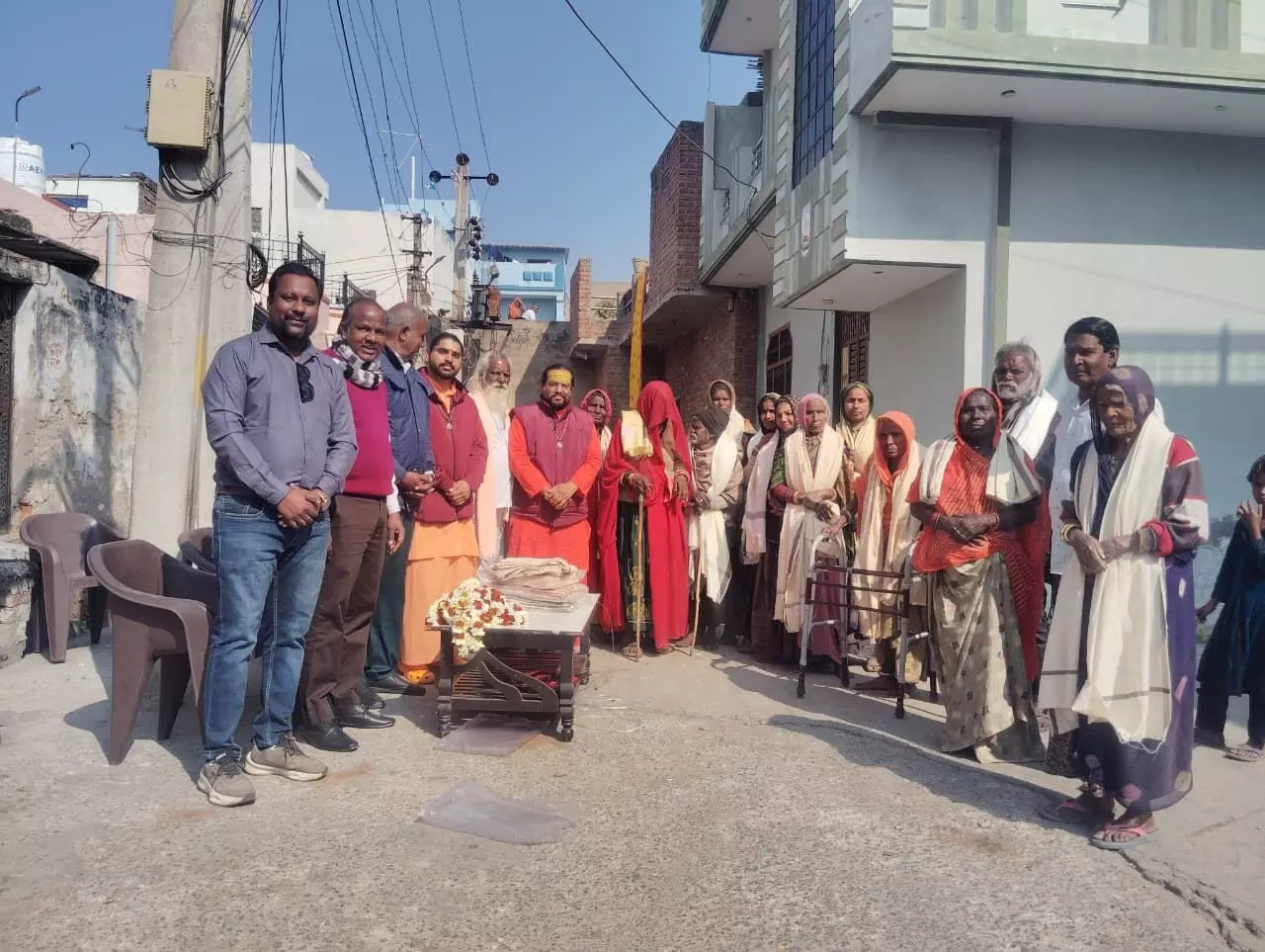 संतों के सानिध्य में निर्धन लोगों को शॉल वितरीत
