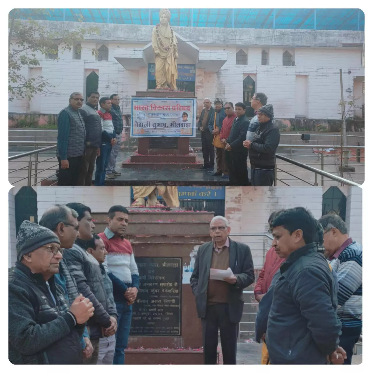 भीलवाड़ा - भारत विकास परिषद नेताजी सुभाष शाखा भीलवाड़ा द्वारा स्वामी विवेकानंद जयंती के पावन अवसर पर आयोजन 12.01.2026, सोमवार,प्रातः 8.30 बजे तरणताल कृषि मंडी के सामने विवेकानंद प्रतिमा पर माल्यार्पण व राष्ट्रगीत के साथ प्रारंभ्भ हुआ । मुख्य उद्बोधन शिक्षाविद् बसंती लाल मूंदड़ा ने उद्बोधन में बताया कि स्वामी जी चरित्र निर्माण,आत्मनिर्भरता और व्यावहारिकता पर आधारित शिक्षा प्रणाली के समर्थक थे। उन्होंने 'एकता की भावना' को बढ़ावा दिया और भारत को एक राष्ट्र के रूप में एकजुट करने का प्रयास किया एवं साथ ही उन्होंने गरीबों और जरूरतमंदों को 'दरिद्र-नारायण' कहा और उनकी सेवा को ही सच्ची ईश्वर सेवा माना। वैसे सही अर्थों में स्वामी जी आज की युवा शक्ति के पथ-प्रदर्शक रहे हैं।