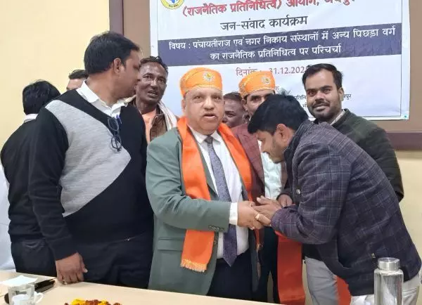 भीलवाड़ा |अन्य पिछड़ा वर्ग आयोग के अध्यक्ष सेवानिवृत न्यायाधीश मदनलाल भाटी व ओबीसी आयोग के सदस्य गोपाल कृष्ण के पंचायतीराज एवं नगर निकाय संस्थानों में अन्य पिछड़ा वर्ग का राजनैतिक प्रतिनिधित्व पर परिचर्चा कार्यक्रम में भीलवाड़ा आगमन पर भीलवाड़ा माली सैनी समाज की ओर से दिनेश कुमार माली व किशन लाल माली ने केसरिया दुपट्टा पहनाकर स्वागत किया।
