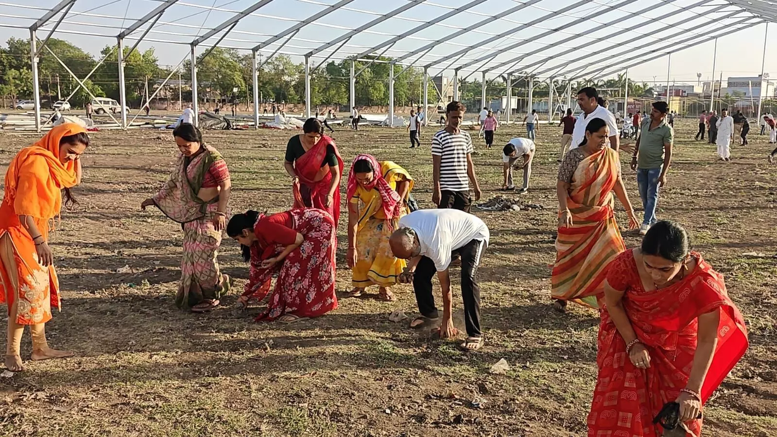 शिव महापुराण कथा से पहले मेडिसिटी ग्राउण्ड की सफाई के लिए सैकड़ो श्रद्धालुओं ने किया श्रमदान, विधायक से लेकर आमजन तक बने सहभागी