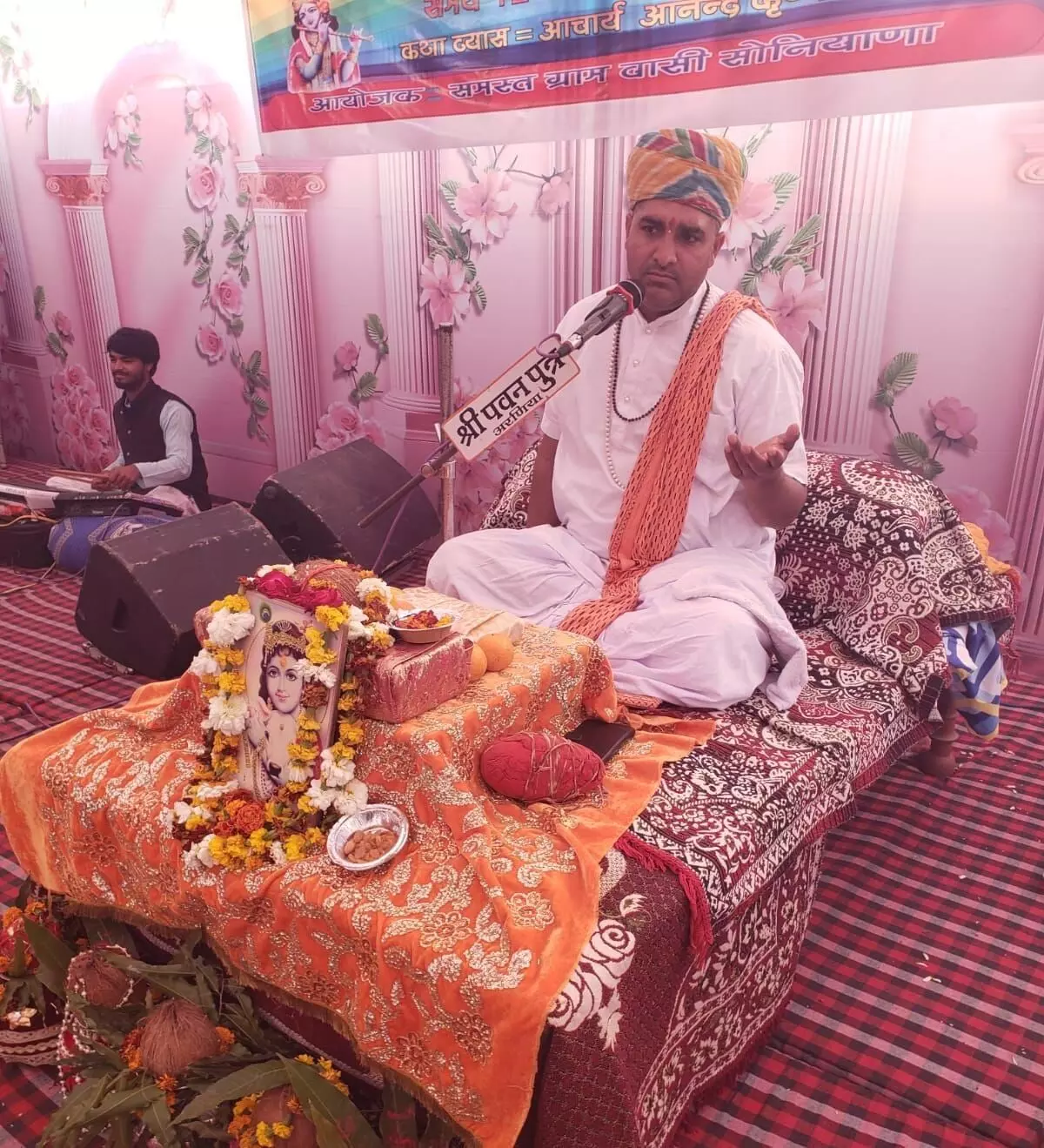 गंगापुर (दिनेश लक्षकार) सोनियाणा गांव में कथा व्यास पंडित आनंद कृष्ण शास्त्री द्वारा भागवत कथा का वाचन किया जा रहा है । महाराज ने भागवत प्रसंगों में गौ माता की महिमा का बखान किया । उन्होंने कहा कि संपूर्ण भारत में चल रहे गौ सम्मान आह्वान अभियान संपूर्ण भारत की आवाज है। शासन को राष्ट्रमाता के पद पर गौ माता को आसीन करना चाहिए भारत के सभी संतों ने निर्णय लिया कि 27 अप्रैल 2026 को भारत की 5000 तहसील पर प्रार्थना प्रस्तुत कर सरकार से गौ माता के लिए उचित कानून बनाने की मांग की जाएगी । ये आंदोलन पूर्णतया शांतिपूर्ण तरीके से चलाकर सरकार से निवेदन रूप में मांग की जाएगी कही भी किसी प्रकार की कोई हिंसा नहीं की जाएगी । महाराज द्वारा उक्त वक्तव्य आयोजित विराट हिन्दू सम्मेलन में भी प्रस्तुत किए गए। महाराज जी ने कथा प्रसंग में सुखदेव जन्म की कथा ,परीक्षित जन्म की कथा ,परीक्षित को श्राप कथा का वाचन किया गया कथा में सोनियाणा गांव के साथ साथ आसपास के गांवों के लोग भी पधार रहे है।