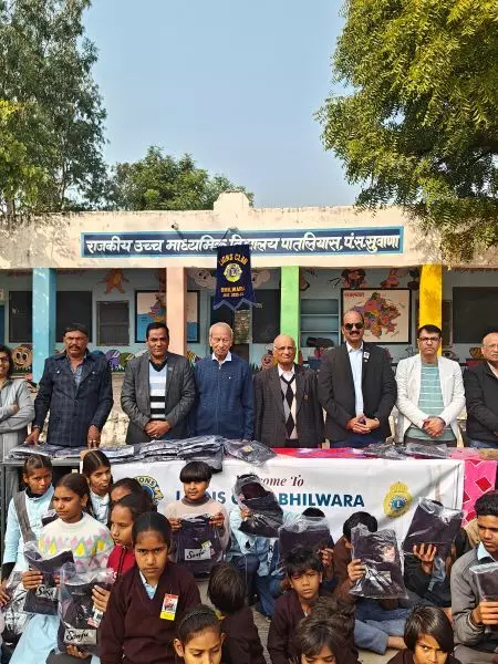 भीलवाड़ा -भीषण सर्दी के मद्देनजर लायंस क्लब भीलवाड़ा ने प्रांतपाल लॉयन रामकिशोर गर्ग द्वारा दिये गये स्लोगन ’’आओ खुशियां बांटे’’ के तहत अपने 16वें चरण में-सामाजिक दायित्व को निभाते हुए एक महत्वपूर्ण कदम उठाया है। क्लब द्वारा ग्रामीण अंचल के रा.उ.मा.वि. पातलियास में जरूरतमंदों बालक-बालिकाओं को स्वेटर वितरण लायंस क्लब भीलवाड़ा के तत्वावधान में क्लब अध्यक्ष एडवोकेट लायन पवन पंवार और क्लब के भामाशाह एमजेएफ लॉयन डॉ. पी.एम. बेसवाल के सहयोग से वितरित किया गया।
