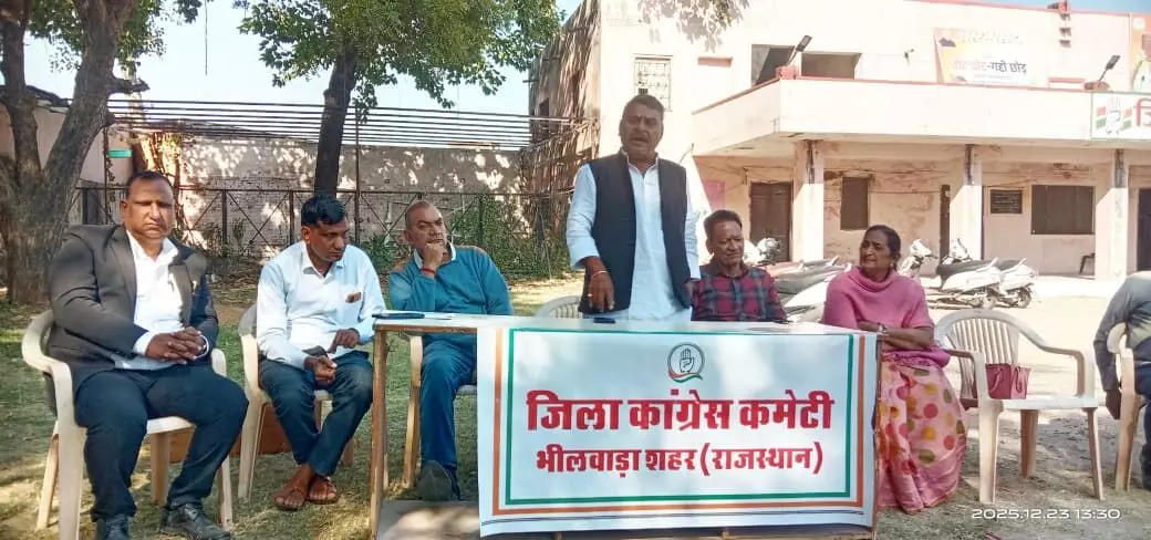 भीलवाड़ा- जिला कांग्रेस कमेटी भीलवाड़ा शहर अध्यक्ष शिवराम जी खटीक के नेतृत्व SIR के बारे में हुई मीटिंग में B.L.A.2 योगेश सोनी अपनी बात रखते हुए कहां पुर में 4 वार्ड एवं 16 बुथ से कुल 2113 वोट कटे
