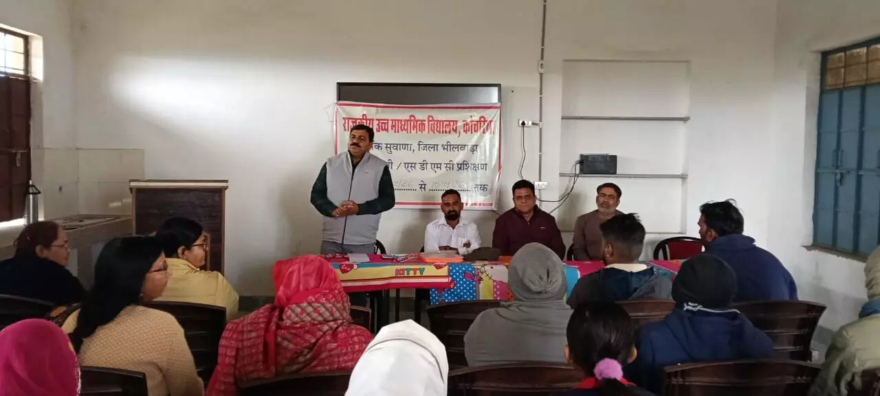 भीलवाड़ा : /राजकीय विद्यालयों में सामुदायिक गतिशीलता बढ़ाने के लिए गठित विद्यालय प्रबंधन एवं विकास समिति के सदस्यों की क्षमता संवर्धन हेतु कोचरिया स्कूल में प्रशिक्षण का आयोजन किया गया। विद्यालय के प्रधानाचार्य रोहित शर्मा ने बताया कि प्रशिक्षण के मुख्य अतिथि भगवती लाल कुमावत, विशिष्ट अतिथि रतन लाल कुमावत एवं अति विशिष्ट अतिथि श्याम लाल रैगर थे। प्रधानाचार्य शर्मा ने प्रशिक्षण में सभी सदस्यों का स्वागत करते हुए विद्यालय के विकास में सहयोग करने की क्षमता का और अधिक संवर्धन करने के लिए आयोजित इस प्रशिक्षण को समुदाय और अभिभावकों के लिए खुला मंच बताया ।दो दिवसीय प्रशिक्षण के केआरपी महेश मंडोवरा ने एसएमसी व एसडीएमसी के कार्यकारिणी सदस्यों की क्षमता का विकास करने,उनकी भूमिका का अहसास कराने एवं विद्यालय व बच्चों के सर्वांगीण विकास हेतु प्रशिक्षण दिया। केआरपी मंडोवरा ने प्रथम सत्र में अपने प्रशिक्षण में सामुदायिक गतिशीलता की अवधारणा, विद्यालयों में नामांकन,ठहराव एवं ड्राप आउट,सामुदायिक जागरूकता कार्यक्रम,निशुल्क और अनिवार्य बाल अधिकार अधिनियम 2009 एवं राज्य नियम 2011 की जानकारी दी । द्वितीय सत्र में एसएमसी एसडीएमसी के कर्तव्य एवं भूमिका, बाल संरक्षण,जेंडर पर विस्तृत प्रशिक्षण दिया। प्रथम दिवस के प्रशिक्षण के अंत में उपस्थित सभी संभागियों ने विद्यालय के प्रबंधन एवं विकास में अपना महत्वपूर्ण योगदान एवं सक्रिय सहभागिता देने के लिए शपथ ली । प्रशिक्षण में समस्त व्यवस्थाओं में विद्यालय स्टाफ का महत्वपूर्ण योगदान रहा।