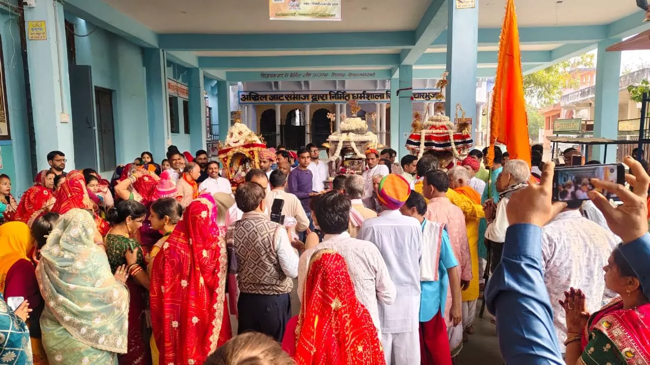 आकोला (रमेश चंद्र डाड)सिंगोली श्याम धार्मिक तीर्थ स्थल पर सालिगग्राम भगवान की ( बारात ) शोभा यात्रा निकाली । मंदिर प्रबंधक अर्जुन सिंह सोलंकी ने बताया कि पुजारी परिवार गोविंद पाराशर ,अनिल पाराशर ,अखिलेश पाराशर ने शालिगग्राम भगवान को दूल्हे के रूप में सजा बेवाण में विराजित कर लक्ष्मीनाथ भगवान व सिंगोली श्याम के बेवाण बारात में शामिल होकर गाजे-बाजे के साथ कस्बे में शोभायात्रा निकालते हुए रतनलाल ,चांदमल ,जगदश चंद्र ,राजेंद्र कुमार ,मनोज कुमार स्वर्णकार के आवास पर तुलसी विवाह करने पहुंचे । शोभा यात्रा में जन सैलाब उमड़ पड़ा श्रद्धालु नाचते गाते थिरकते हुए बारात में चारभुजा नाथ का जयकारा लगाते हुए चल रहे थे। स्वर्णकार परिवार द्वारा पुष्प वर्षा व पगबरना बिछाकर बारात का स्वागत किया । तोरण की रश्म के बाद स्वर्णकार परिवार द्वारा जोड़े बैठकर विद्वान पंडितों के वेद मंत्रो से तुलसी विवाह किया गया । इस अवसर पर मंदिर भंडारी सुरेंद्र पराशर ,पंचायत प्रशासक राकेश कुमार आर्य , राजेंद्र कुमारओझा , शांतिलाल पाराशर ,शंभू सिंह गहलोत ,दिनेश कुमार सोनी ,लोकेश कुमार सोनी ,हरिशंकर पाराशर ,प्रहलाद राय पाराशर , सहीत सिंगोली श्याम मित्र मंडल के सदस्य उपस्थित थे ।