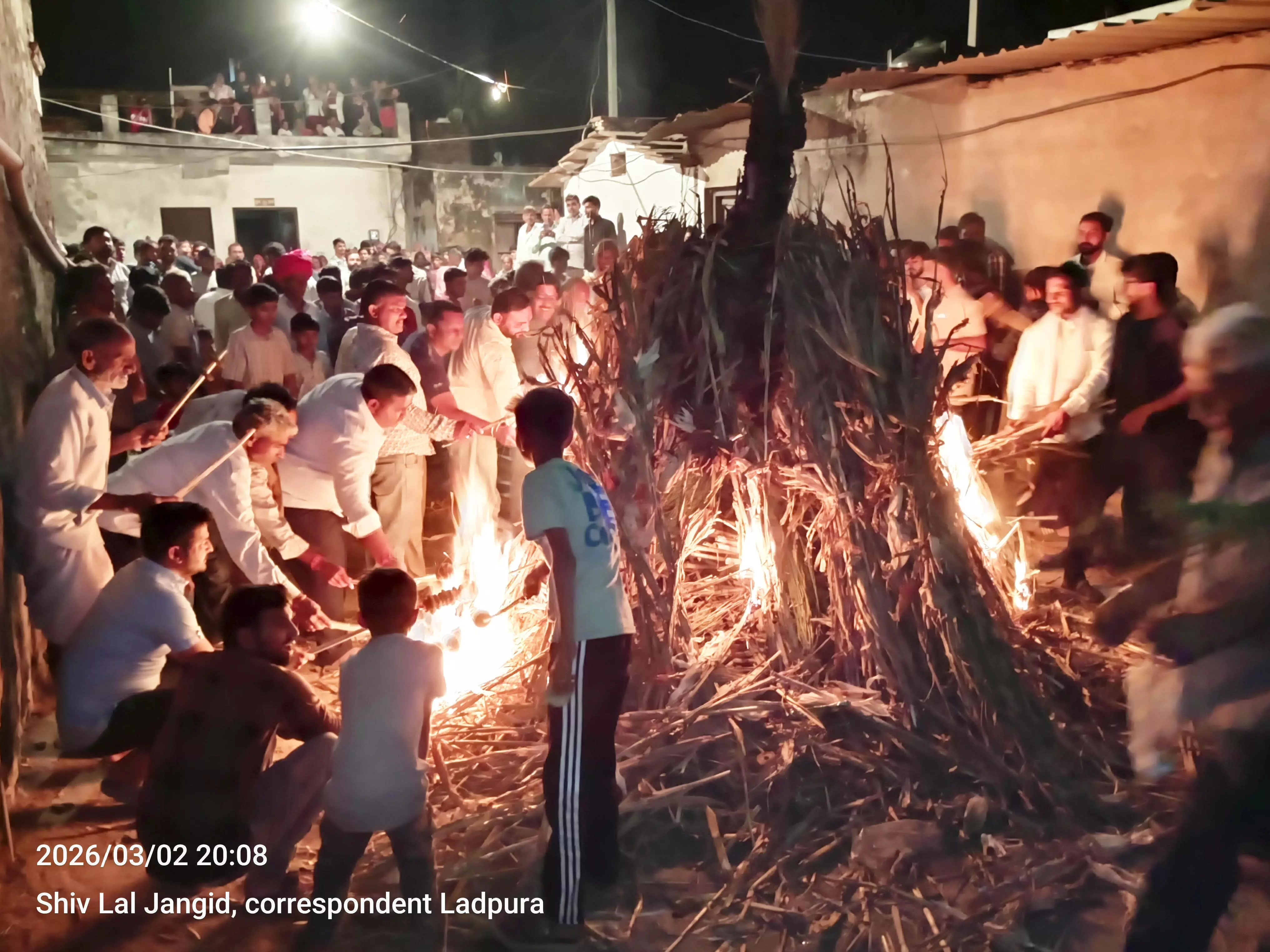 लाडपुरा ( शिव लाल जांगिड़ ) लाडपुरा कस्बे सहित गांवो में सोमवार शाम को होलिका दहन से पूर्व छोटी-छोटी बालिकाओं ने होली प्रांगण में जाकर गोबर से बने बड़बुलिए डाले और एक दूसरे को गुलाल लगाकर पर्व की शुभकामनाएं दी। क्षेत्र सहित कस्बे में होली का त्योहार हर्ष और उल्लास के साथ मनाया गया। धाकड़ मोहल्ले में बालाजी मंदिर के पास सोमवार रात्रि 8.15 बजे शुभमुहूर्त में गोबर कंडो से बनी वैदिक होलिका दहन कार्यक्रम आयोजित हुआ। पंडित शिव शर्मा के वैदिक मंत्रोच्चार के बीच विधिवत पूजन अर्चन कर वैदिक होलिका दहन किया गया। इसके पूर्व बालिकाओं ने गोबर के बड़बुलिये बनाकर कस्बे में रोपी गई होलिका को इसकी माला पहनाई तथा सुख समृद्धि की कामना की गई। बरसो से चली आ रही परम्परा के अनुसार कस्बे में चारभुजा नाथ मंदिर प्रांगण से गांव के पंच पटेलों एवं बड़े बुजुर्गों, युवाओं के साथ जुलूस आगे बढ़ते हुए रणजीत सिंह के सानिध्य में होली के ठान पर सभी ने पहुंचकर पूजा अर्चना के पश्चात होलिका दहन हुआ। इस दौरान दिनेश सिंह शक्तावत, मोडू माली, कालू सुथार, प्रभु धाकड़, हीरा धाकड़, लक्ष्मीनारायण धाकड़, सहित कई क्षेत्रवासी मौजूद थे। होलिका दहन के बाद ग्रामीणों परंपरा के अनुरसर होलिका की नई अग्रि को अपने घर लेगए, कई लोगों ने होलिका की अग्नि में गेहूं की डांगी सेक कर उसका सेवन किया। प्राचीन समय में होलिका की अग्नि से वर्ष पर्यन्त घर का चुल्हा जलता था।