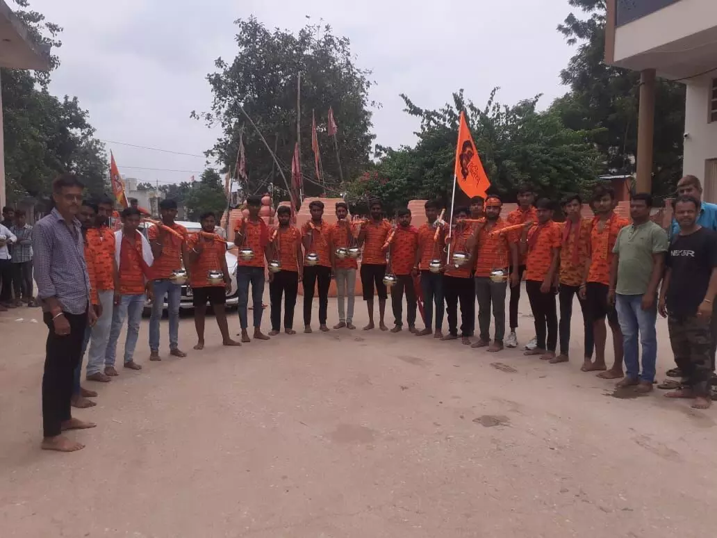 आकोला ( रमेश चंद्र डाड)त्रिवेणी से कावड़ यात्रा हरणीमहादेव शिव मित्र मंडल कावड़ यात्रा के20 सदस्य दुर्गेश सिंह बबलू गाडरी सचिन जाट विनोद गाडरी शंकर जाट गोपाल गाडरीसुबह त्रिवेणी धाम से मांहा आरती व प्रसाद वितरण करने बाद जय शिव भोले हर-हर महादेव केघोष के साथ रवाना हो हुई रास्ते में कई जगह उनका स्वागत हुआ बरुदंनी मेउनका दुपट्टा माला पहनकर कावड़ यात्रा के भक्तों का स्वागत किया इसमें भेरूलाल गाडरी शिव प्रकाश भट्ट भूपेन्द्र गट्टाणीे शकर खटिक शैतान मीणा बाबूलाल प्रजापत घनश्याम प्रजापत कालूराम खटीक लादु टेलर प्रसाद राम हरिजन आदि नेस्वागत किया |