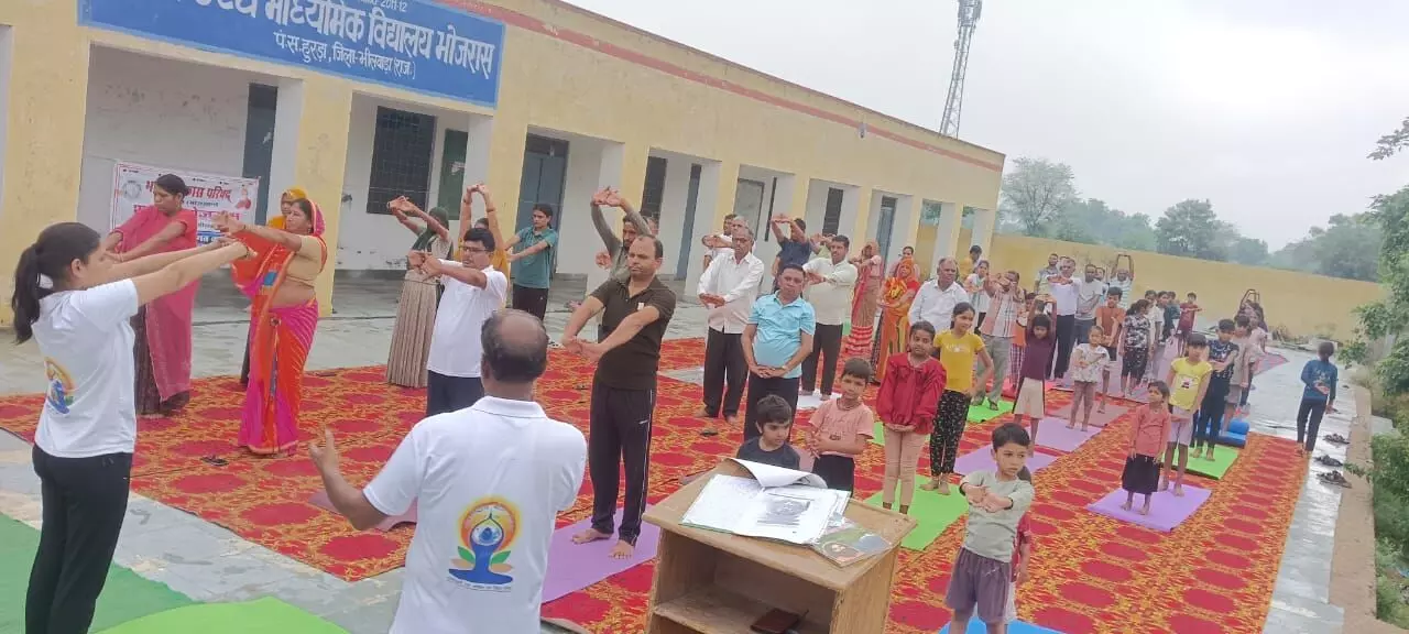 आकोला ( रमेश चंद्र डाड)भारत विकास परिषद शाखा भोजरास द्वारा आज 10 जून से 21 जून के मध्य योग शिविर का समापन अंतर्राष्ट्रीय योग दिवस पर किया गया। भारत विकास परिषद व आयुष हेल्थ केयर भोजरास के संयुक्त तत्वावधान में राजकीय उच्च माध्यमिक विद्यालय भोजरास में सुबह 6:00 से 8:00 बजे के मध्य योगाभ्यास योग प्रशिक्षक पुष्पेंद्र जाट व सुनीता जाट द्वारा योगाभ्यास करवाया गया। शाखा परिवार द्वारा उन्हें सम्मानित किया गया। योग शिविर में परिषद सदस्यों के साथ-साथ ग्रामीणजन व मात्र शक्तिया भी उपस्थित थीं। परिषद परिवार की ओर से योग शिविर में सहभागिता दर्ज करने वाले सभी सदस्यों को फलाहार वितरित किया गया। योगाभ्यास में शाखा अध्यक्ष भंवर लाल टेलर, शाखा सचिव अमर सिंह राठौड़, शाखा सेवा संयोजक अशोक अजमेरा, शाखा संस्कार संयोजक जगदीश कुम्हार, शाखा पर्यावरण संयोजक राजू लाल जाट, शाखा संपर्क संयोजक श्रीमान अशोक मानावत,शाखा योग एवं आयुर्वेद प्रभारी कृष्ण कांत शर्मा, लादूराम जाट, राम पाल बेरवा, पूरणमल मानावत, लालचंद गुर्जर, छोगाराम गुर्जर, श्रवन गुर्जर,आदि परिषद सदस्य व महिला सहभागिता संयोजक कैलाश देवी टेलर, रेखा अजमेरा, टीना मालपानी, भावना अजमेरा, घणी कुम्हार, माया कुम्हार, दुर्गा बुनकर परिषद मातृ शक्ति सहित 125 ग्रामीण जन व मात्र शक्तियों उपस्थित थी। योग शिविर का संचालन चिरंजीव वैष्णव ने किया।अंत में वंदे मातरम व भारत माता की जय के जयकारो के साथ योग शिविर का समापन किया।