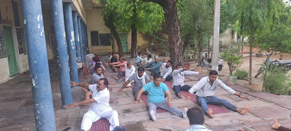 आकोला (रमेश चंद्र डाड) कस्बे में गुरुवार को राजकीय उच्च माध्यमिक विद्यालय में भाजपा नंदराय मंडल द्वारा योग प्रशिक्षण शिविर का आयोजन भाजपा प्रदेश एवं जिला संगठन के निर्देशानुसार मंडल अध्यक्ष प्रकाश सांगावत के सानिध्य में संपन्न हुआ। शिविर में मंडल मंत्री अनिल शर्मा ने कार्यकर्ताओं एवं उपस्थित ग्रामीणों को अनुलोम विलोम, कपालभाति, सूर्य नमस्कार की विभिन्न योग क्रियाओं का प्रशिक्षण दिया। प्रियदर्शी पारीक ने योग को आध्यात्मिकता से जोड़ते हुए ओंकार मंत्र का लोगों से उच्चारण करवाया। शिविर में भाग लेने वाले लोगों को मंडल अध्यक्ष प्रकाश सांगावत ने योग को अपने जीवन में शामिल कर निरोगी रहने का मंत्र दिया। इस दौरान मंडल महामंत्री दुष्यंत शर्मा, जीवा का खेड़ा पूर्व सरपंच शोभालाल जाट, कोटडी पूर्व उप प्रधान बृजराज कृष्ण उपाध्याय, प्रधान जाट, ग्राम पंचायत प्रतिनिधि विकास पाराशर, शंकर जाट, देव किशन गुर्जर, जसवंत पारीक,सत्यनारायण तेली, पप्पू खटीक, कैलाश तेली, भानु प्रताप पारीक, अंकित सेन, प्रभु तेली, दुर्गा लाल बलाई,नारायण माली सहित भाजपा कार्यकर्ता एवं ग्रामीण उपस्थित थे।