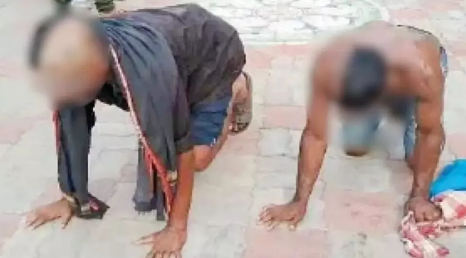 दो युवकों को पीटा, घास खाने नाली का पानी पीने को किया मजबूर आधा सिर मुड़वा कर घुटनों के बल चलाया