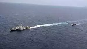 घेराबंदी और जब्ती: भारतीय कोस्ट गार्ड के जहाज ने तत्परता दिखाते हुए नाव का पीछा किया और उसे घेरकर रोक लिया। पकड़ी गई नाव का नाम 'अल-मदीना' बताया जा रहा है।