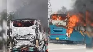 यमुना एक्सप्रेसवे पर बस में लगी आग, 48 यात्री बाल-बाल बचे