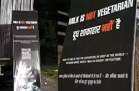 जानकारी के अनुसार, रातों रात गुपचुप तरीके से नर्मदा तट और आसपास के इलाकों में कई विवादित फ्लेक्स बोर्ड लगाए गए थे। इन बोर्ड पर लिखा गया — “दूध शाकाहार नहीं है। भारत दुनिया में बीफ के सबसे बड़े निर्यातकों में से एक है। अधिक जानने के लिए ‘मां का दूध’ यूट्यूब पर देखें।” सुबह जब श्रद्धालुओं ने इन बोर्ड को देखा तो आक्रोश फैल गया।