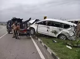 अमरनाथ यात्रा के दौरान भीषण सड़क हादसा ,ट्रक ने कार को मारी टक्कर पांच यात्री घायल
