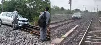 महिला ने रेल की पटरी पर दौड़ा दी कार