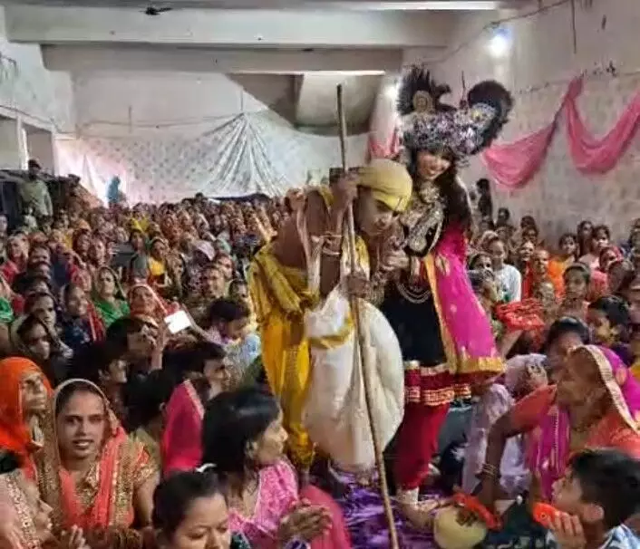 कथा का वचन कथा का वचन पंडित आनंद कृष्ण महाराज ने किया आज समापन से पहले मित्रता दिवस पर कृष्ण सुदामा के चरित्र का वाचन किया गया, इस देखकर वहां भक्त लोग नाचने लगे।