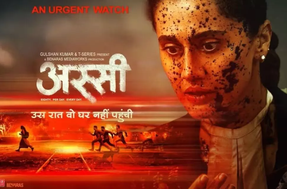 मुंबई। अभिनेत्री तापसी पन्नू की आगामी फिल्म अस्सी का मोशन पोस्टर सामने आ गया है, जिसने रिलीज होते ही दर्शकों के बीच चर्चा तेज कर दी है। अनुभव सिन्हा के निर्देशन में बनी यह फिल्म दुष्कर्म, अपराध और न्याय व्यवस्था जैसे संवेदनशील मुद्दों पर आधारित बताई जा रही है। पोस्टर से साफ संकेत मिलता है कि यह कहानी सिर्फ मनोरंजन तक सीमित नहीं रहेगी, बल्कि समाज को झकझोरने वाले सवाल भी उठाएगी।