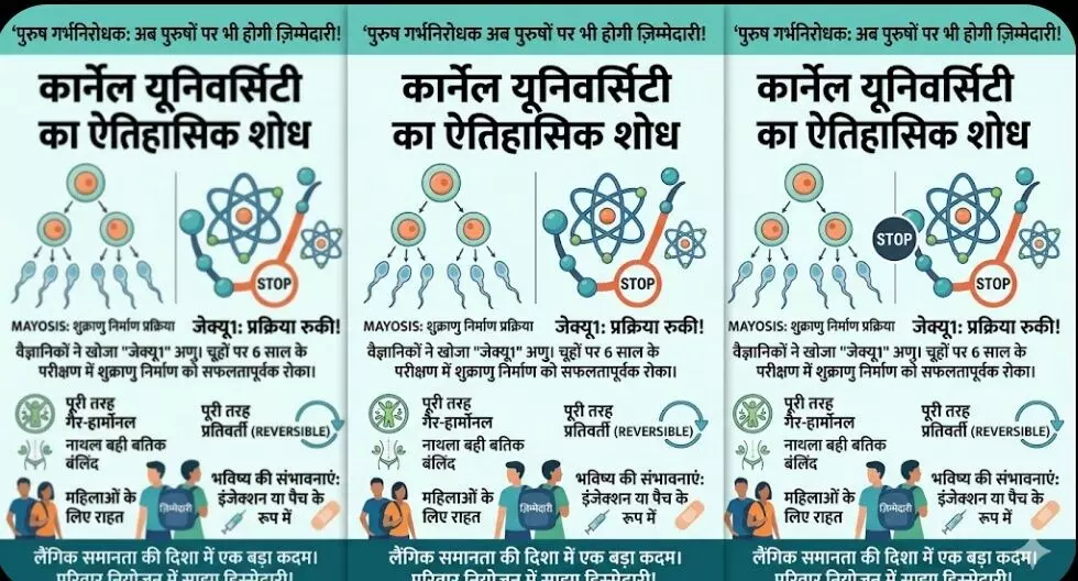 भीलवाड़ा |दशकों से परिवार नियोजन की जिम्मेदारी का सारा भार महिलाओं पर रहा है, लेकिन अब विज्ञान के गलियारों से एक ऐसी खबर आई है जो भविष्य की तस्वीर बदल सकती है। कार्नेल यूनिवर्सिटी के वैज्ञानिकों ने एक ऐसी तकनीक विकसित करने का दावा किया है, जो पुरुषों के लिए 'रिवर्सिबल' (प्रतिवर्ती) गर्भनिरोधक गोली के सपने को हकीकत में बदल सकती है।