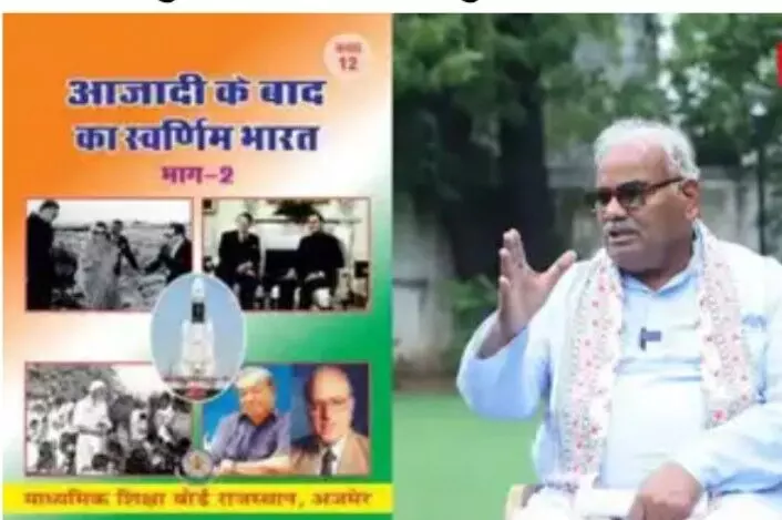 जयपुर। प्रदेश में माध्यमिक शिक्षा बोर्ड की 12वीं कक्षा की पाठ्यपुस्तक को लेकर सियासी माहौल गर्मा गया है। राजस्थान पाठ्यपुस्तक मंडल द्वारा 'आजादी के बाद का स्वर्णिम इतिहास' शीर्षक से लगभग पांच लाख पुस्तकें 19,700 स्कूलों में वितरित की गई हैं। जब पुस्तकें स्कूलों में पहुंचीं तो इसमें छपे तथ्यों को लेकर विवाद खड़ा हो गया।