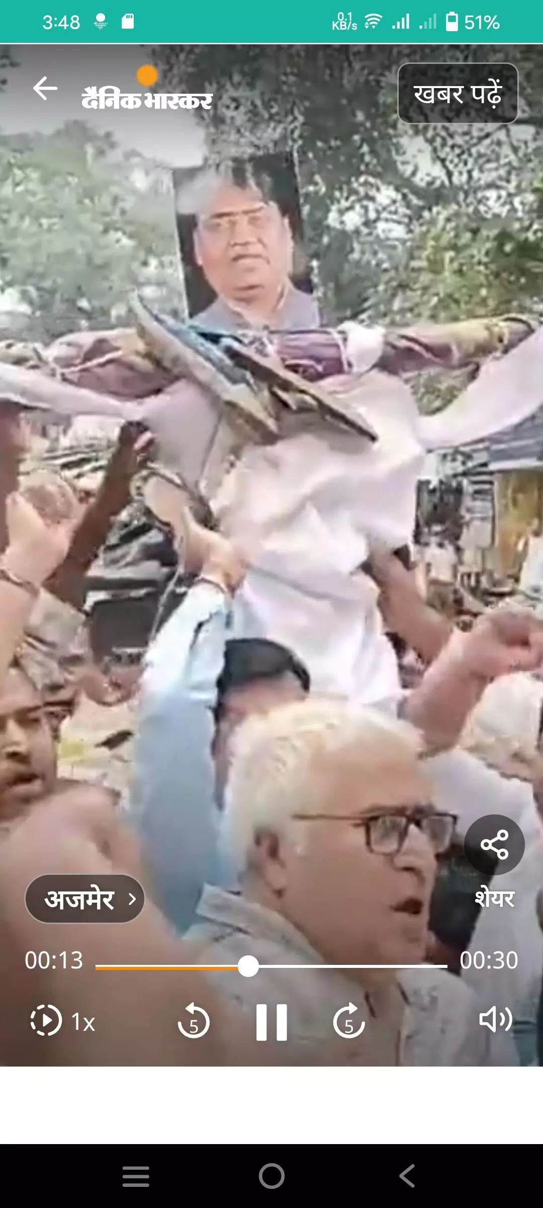 डोटासरा की टिप्पणी पर भाजपा का हंगामा, अजमेर में पुतला दहन