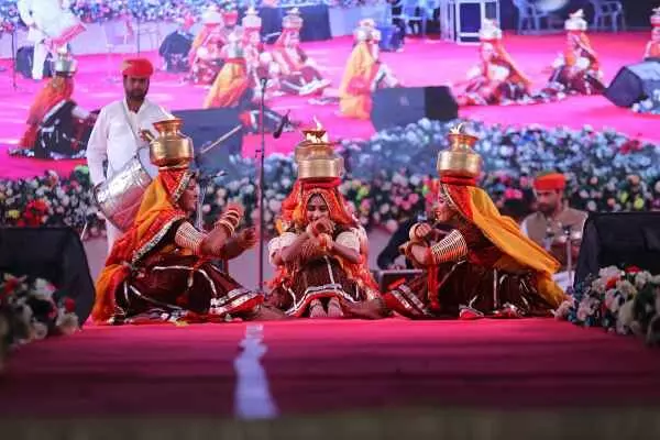 राजस्थान की माटी से जुड़ा चरी घूमर नृत्य विशेष आकर्षण का केंद्र रहा। टीम लीडर अंजना कुमावत के नेतृत्व में 15 कलाकारों ने सिर पर प्रज्ज्वलित चरी धारण कर संतुलन, अनुशासन और सौम्यता का अद्भुत प्रदर्शन किया। यह नृत्य मरुस्थलीय जीवन में प्रकाश, उत्सव और नारी शक्ति का प्रतीक है, जिसे कलाकारों ने अत्यंत गरिमा के साथ मंच पर साकार किया। हर चक्कर के साथ दर्शकों की तालियां और उत्साह बढ़ता गया।