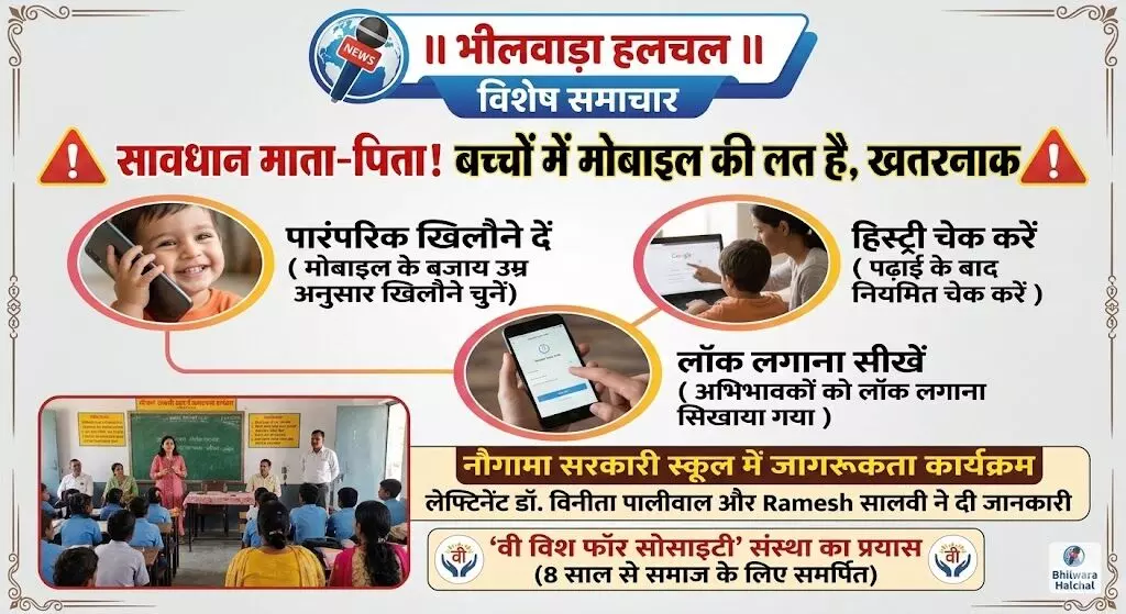 सावधान! बच्चों को मोबाइल की लत है खतरनाक, 'वी विश फॉर सोसाइटी' ने नौगामा में जगाई जागरूकता