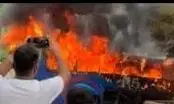 माता की पहाड़ियों में ब्रेक फेल हुए, बिजली से पोल से टकराई बस में लगी आग, एक मौत; 21 घायल