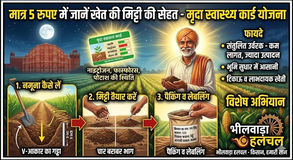 खेती को अधिक लाभप्रद और वैज्ञानिक बनाने की दिशा में सरकार की 'मृदा स्वास्थ्य कार्ड योजना' (Soil Health Card Scheme) मील का पत्थर साबित हो रही है। अब किसान मात्र 5 रुपए का मामूली शुल्क चुकाकर अपने खेत की मिट्टी की जांच करवा सकते हैं। कृषि विभाग द्वारा चलाए जा रहे विशेष जागरूकता अभियान के तहत किसानों को अपनी मिट्टी की गुणवत्ता और उसमें मौजूद पोषक तत्वों की सटीक जानकारी दी जा रही है।