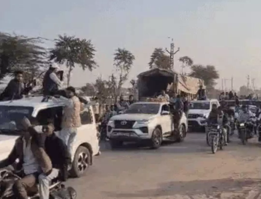 नागौर/जयपुर। राजस्थान की राजनीति के 'पावर हाउस' कहे जाने वाले नागौर सांसद और RLP संयोजक हनुमान बेनीवाल एक बार फिर सड़कों पर उतरे हैं। किसानों की मांगों को लेकर शुरू हुआ आंदोलन अब बड़े शक्ति प्रदर्शन में बदल गया है। मंगलवार को बेनीवाल 2000 गाड़ियों के विशाल काफिले के साथ जयपुर की ओर कूच कर गए। इस दौरान हाईवे पर भारी पुलिस जाब्ता और बेरिकेडिंग के बीच प्रशासन के साथ लुका-छिपी का खेल चलता रहा।