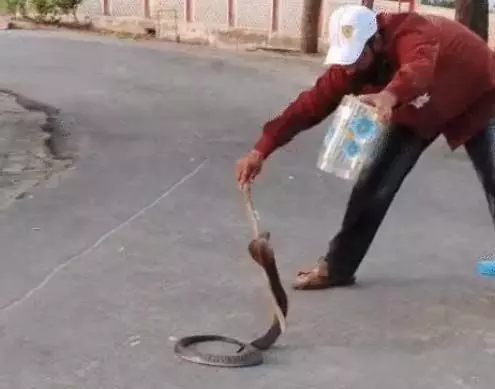 सूचना मिलते ही वन्यजीव प्रेमी गालिब खान तत्काल मौके पर पहुंचे। बताया जा रहा है कि यह कोबरा 'नाजा' प्रजाति का था और बेहद जहरीला था। रेस्क्यू के दौरान सांप करीब 20 मिनट तक फन फैलाकर बैठा रहा, जिससे वहां मौजूद कर्मचारियों में दहशत फैल गई। गालिब खान ने करीब आधे घंटे की मशक्कत के बाद सांप को सुरक्षित पकड़ लिया और बाद में उसे जंगल में छोड़ दिया गया।