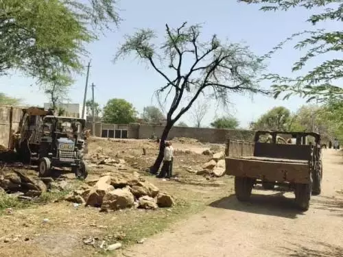 बदनोर (हलचल)। उपखंड क्षेत्र के सुराज गांव में शुक्रवार को प्रशासन ने बड़ी कार्रवाई करते हुए राजकीय उच्च माध्यमिक विद्यालय की कीमती भूमि को अतिक्रमण मुक्त कराया। यह कार्रवाई उपखंड अधिकारी (एसडीएम) नीतू करोल के निर्देशों पर 'राजस्थान संपर्क पोर्टल' पर दर्ज परिवाद के निस्तारण के तहत अमल में लाई गई।