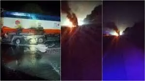 जयपुर-अजमेर हाईवे पर बेंजीन टैंकर में लगी आग, बाल-बाल बचे लोग