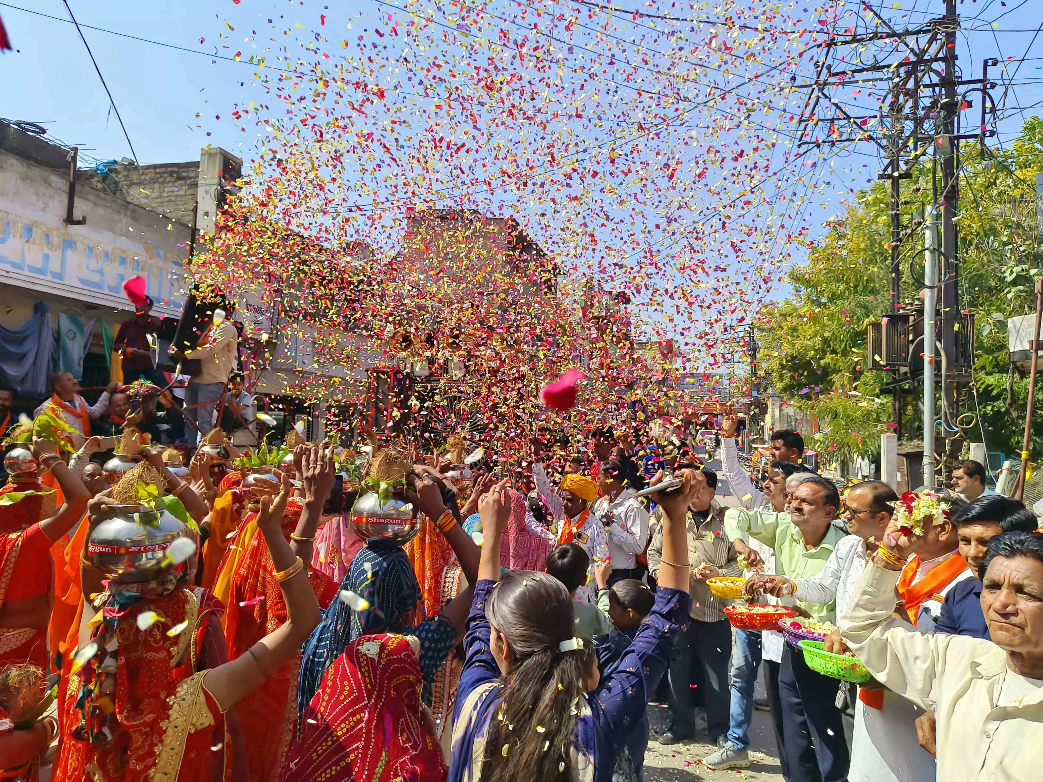 शोभायात्रा के दोपहर 12:30 बजे यहां पुलिस चौकी के पास चित्तौड़ी दरवाजा पहुंचने पर पूर्व सहकारिता मंत्री उदयलाल आंजना की ओर से नगर कांग्रेस कमेटी अध्यक्ष बंशीलाल राईवाल की उपस्थिति में कांग्रेस जनों पुष्प वर्षा कर भव्य स्वागत अभिनंदन किया।शोभायात्रा में रथ में विराजित संत शिरोमणी श्री 1008 रविदास जी महाराज की तस्वीर पर बंशीलाल राईवाल ने माल्यार्पण कर नमन किया। संत शिरोमणी रविदास जयंती समारोह समिति के पदाधिकारियों द्वारा बंशीलाल राईवाल को साफा बांधकर एवं ओपर्णा ओढ़ाकर सम्मान किया गया। समस्त कांग्रेस जनों ने शोभायात्रा में शामिल सभी गणमान्य जनों, संत शिरोमणी श्री रविदास जी के समस्त भक्तों को बधाई शुभकामनाएं दी।
