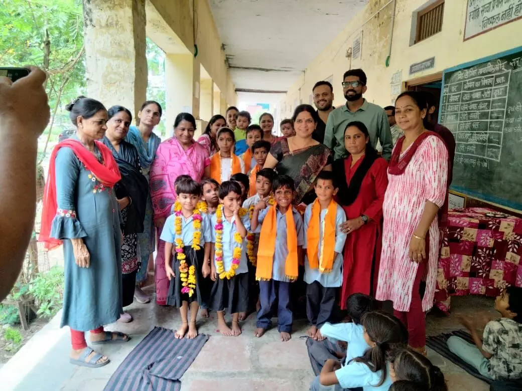 माल्यापर्ण कर किया नवप्रवेशी का स्वागत, दानदाताओं ने वितरित की स्टेशनरी किट