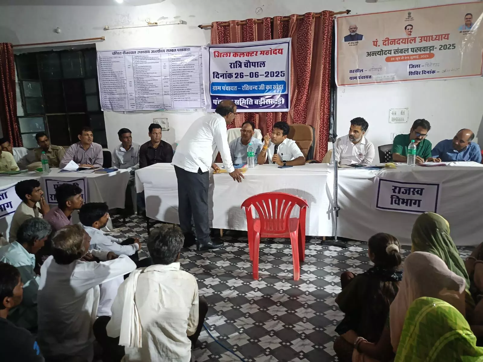 चित्तौड़गढ़। जिला कलक्टर आलोक रंजन ने गुरुवार रात्रि को बड़ी सादड़ी उपखंड की ग्राम पंचायत रति चंद जी का खेड़ा में रात्रि चौपाल एवं जनसुनवाई का आयोजन कर ग्रामीणों से सीधा संवाद किया। इस अवसर पर 40 से अधिक प्रार्थना पत्रों पर मौके पर ही सुनवाई कर संबंधित अधिकारियों को आवश्यक कार्रवाई के निर्देश दिए गए।