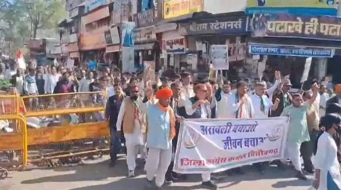 चित्तौड़गढ़ में कांग्रेस ने अरावली संरक्षण के लिए निकाला विरोध मार्च