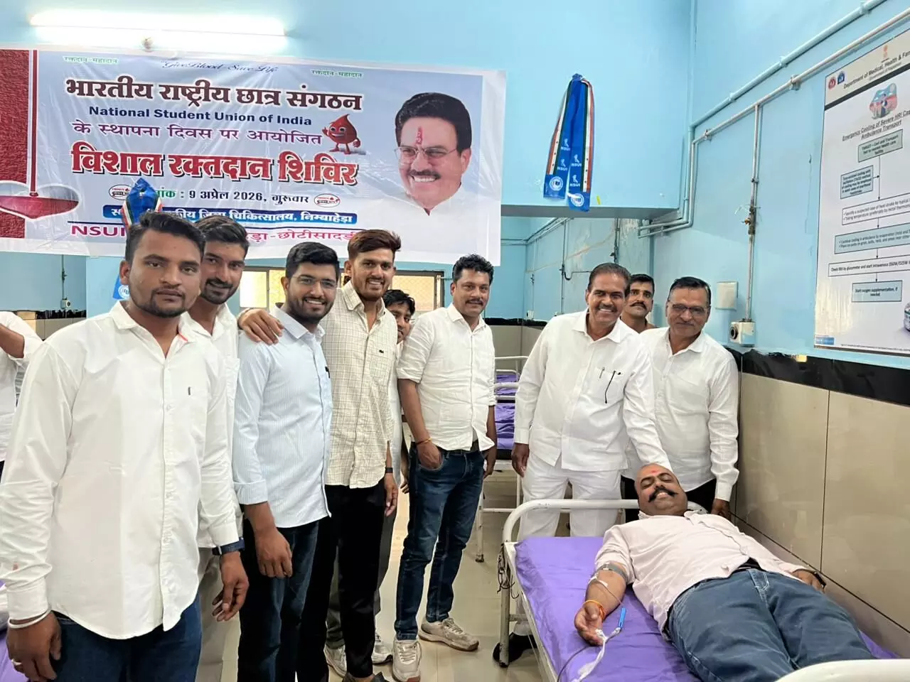निंबाहेड़ा भारतीय राष्ट्रीय छात्र संगठन (NSUI) के स्थापना दिवस के अवसर पर निंबाहेड़ा में स्वैच्छिक रक्तदान शिविर का भव्य एवं सफल आयोजन किया गया। राजकीय जिला चिकित्सालय, निंबाहेड़ा में आयोजित यह शिविर प्रातः 9 बजे से दोपहर 3 बजे तक चला, जिसमें सेवा भावना से ओतप्रोत युवाओं एवं नागरिकों ने उत्साहपूर्वक भाग लेकर 108 यूनिट रक्तदान किया।