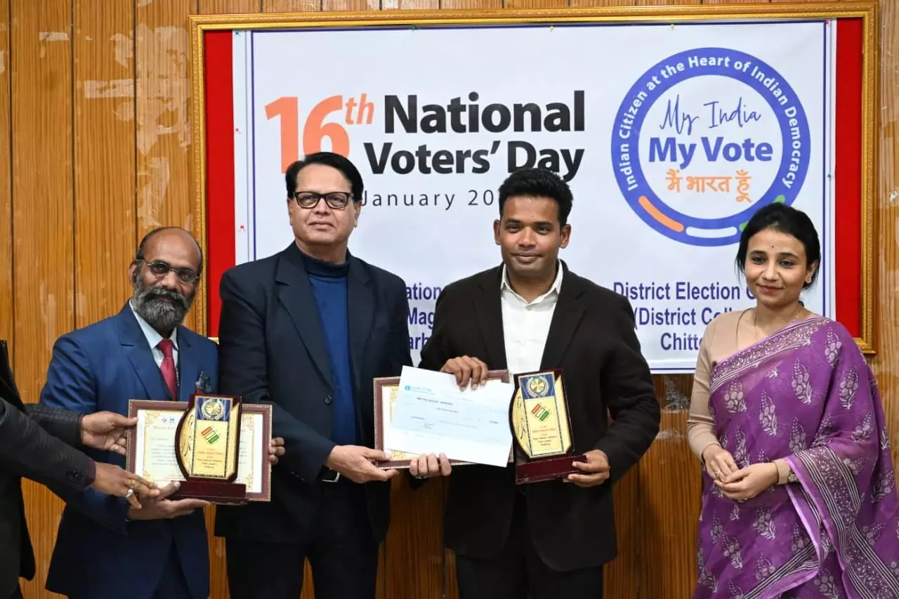राष्ट्रीय मतदाता दिवस के अवसर पर मेरा भारत–मेरा वोट थीम पर आयोजित जिला स्तरीय समारोह में उपस्थित अधिकारियों, कर्मचारियों एवं नागरिकों को लोकतांत्रिक मूल्यों के पालन, स्वतंत्र एवं निष्पक्ष मतदान तथा मतदाता कर्तव्यों के प्रति सजग रहने की मतदाता शपथ दिलाई गई। इसके पश्चात जिला निर्वाचन अधिकारी एवं जिला कलेक्टर आलोक रंजन द्वारा निर्वाचन कार्य में उत्कृष्ट योगदान देने वाले अधिकारी-कर्मचारियों को सम्मानित किया गया।