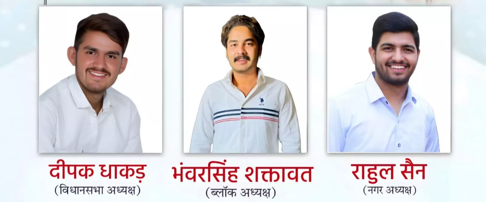निंबाहेड़ा राजस्थान सरकार के पूर्व सहकारिता मंत्री उदयलाल आंजना की अनुशंसा पर NSUI निंबाहेड़ा कार्यकारिणी की हुई घोषणा । राजस्थान सरकार के पूर्व सहकारिता मंत्री उदयलाल आंजना की अनुशंसा से एवं भारतीय राष्ट्रीय छात्र संगठन राजस्थान के प्रदेश अध्यक्ष विनोद जाखड़ एवं चित्तौड़गढ़ जिलाध्यक्ष कन्हैया वैष्णव ने NSUI निंबाहेड़ा छोटीसादड़ी विधानसभा अध्यक्ष, ब्लॉक अध्यक्ष एवं नगर अध्यक्ष की घोषणा करते हुए बताया कि विधानसभा अध्यक्ष पद पर दीपक धाकड़ , ब्लॉक अध्यक्ष पद पर भंवर सिंह शक्तावत एवं नगर अध्यक्ष पद पर राहुल सैन की नियुक्ति की गई है।