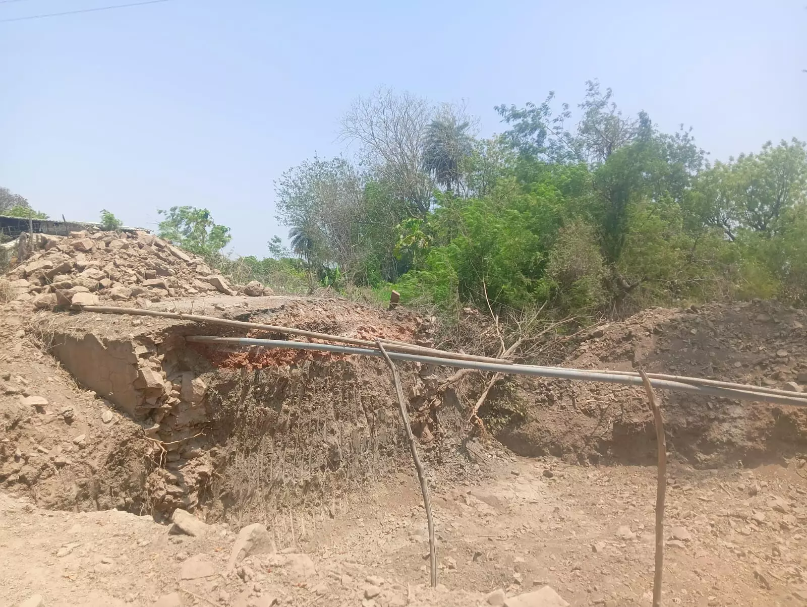 पुल निर्माण के नाम विभाग ने गड्डे खोद दिये,तीन माह से काम बंद आमजन परेशान