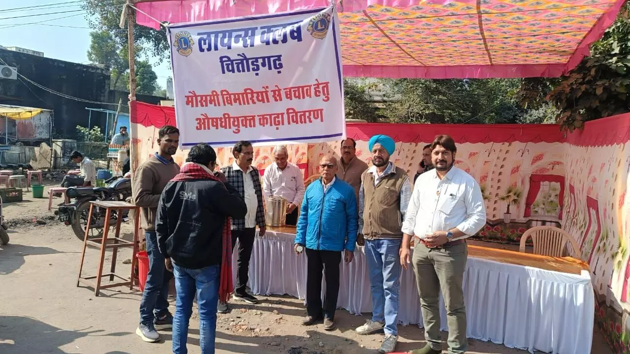 चित्तौडगढ । शहर मे चल रही शीत लहर के मध्यनजर सर्दी प्रकोपीत बीमारियों से बचाव हेतु लायंस क्लब ने आयुर्वेदिक काढ़े का शास्त्री नगर चौराहे पर निशुल्क वितरण किया।