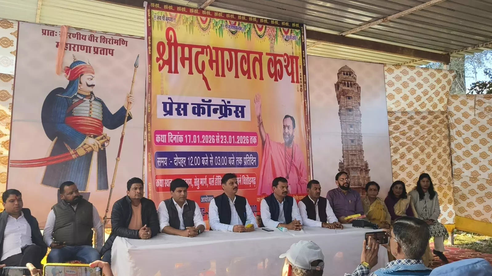पत्रकार वार्ता में भरत जागेटिया, मनोज पारीक, राजन माली, रवि मेनारिया, राजेश लोट, राजकुमार तोलम्बिया सहित अनेक गणमान्य नागरिक एवं समिति सदस्य उपस्थित रहे। समिति ने समस्त नगरवासियों एवं श्रद्धालुओं से अपील की है कि वे इस भव्य, विशाल, ऐतिहासिक और दिव्य श्रीमद्भागवत कथा एवं शोभायात्रा में सपरिवार सहभागिता कर धर्मलाभ अर्जित करें।