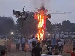 दशहरा पर्व में अफरा-तफरी: फोटोग्राफर झुलसा, हाथी बेकाबू और पुतले गिरे**