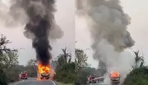 बांसवाड़ा-उदयपुर मार्ग पर चलती स्लीपर बस बनी आग का गोला, यात्रियों ने कूदकर बचाई जान