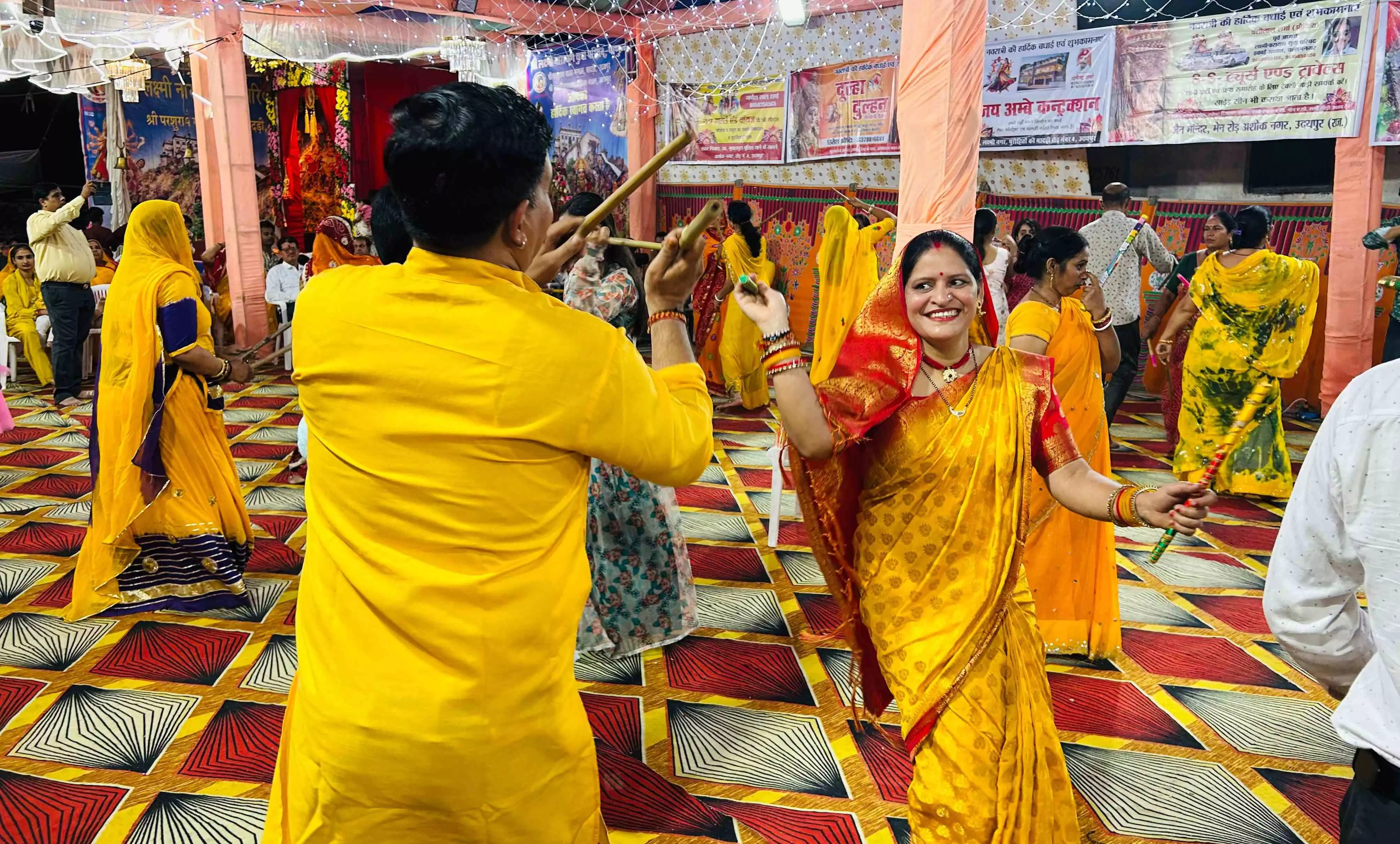 उदयपुर। श्री लक्ष्मीनारायण युवा परिषद एवं परशुराम गरबा मंडल की ओर से पुरोहितों की मादड़ी स्थित दुदाजी का देवरा मंदिर प्रांगण में समस्त औदिच्य समाज के सामूहिक गरबा उत्सव में भरपूर रंग जमा। सामाजिक स्तर पर आयोजित इस भव्य महोत्सव में आज समाज के अधिकांश महिलाएं और पुरुष पीले कलर की वेशभूषा में नजर आए। एक ही रंग में रंगे समाज जनों ने मां अंबे कि पूरे भक्ति भाव के साथ आराधना की और गरबा के गानों पर जमकर डांडिया खेले। डांडियों की खनक के साथ देर रात तक समाजजनों खुब गरबा खेला। महोत्सव में पारंपरिक गीतों की धुन पर सभी ने गरबे का आनंद लिया।