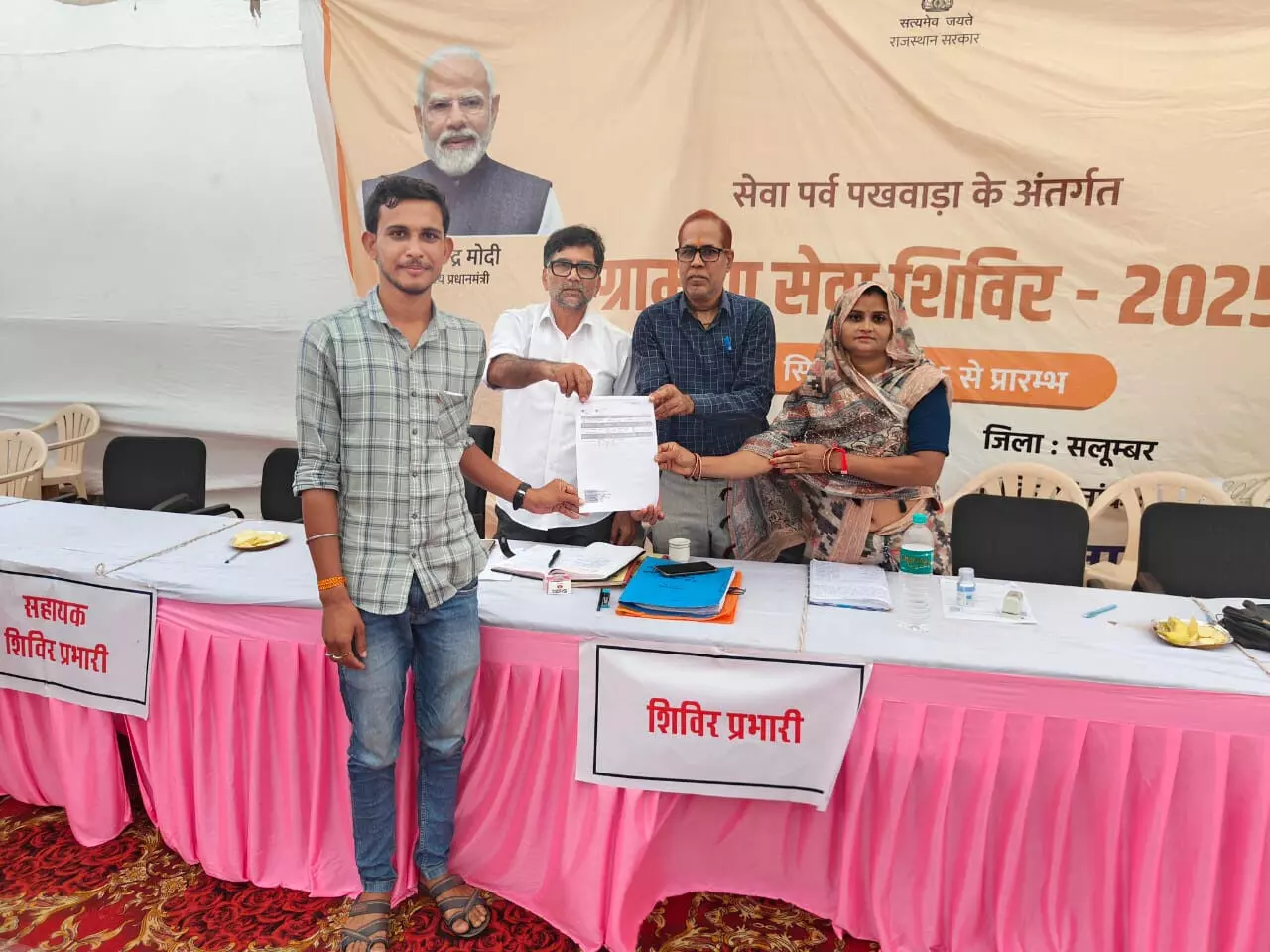उदयपुर/ सलुम्बर, 4 अक्टुबर। ग्राम पंचायत पीलादर में ग्रामीण सेवा शिविर 2025 का आयोजन किया गया जिसमें कुलदीप पटेल का पिछले 5 माह से जनाधार में नाम नही जुड़ रहा था उसका समाधान शिविर प्रभारी सुरेश चंद्र खटीक द्वारा शिविर में उक्त लाभार्थी का कार्य पूर्ण किया गया उसके लिये कुलदीप पटेल ने आभार प्रकट किया।